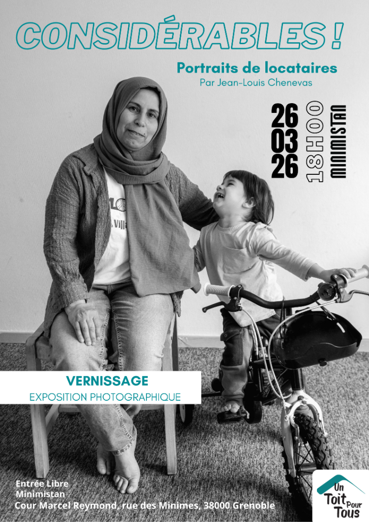 Notre adhérent, l’association Un Toit Pour Tous, présente à Grenoble une exposition photographique intitulée « Considérables ! Portraits de locataires », visible du 26 mars au 16 juin 2026.